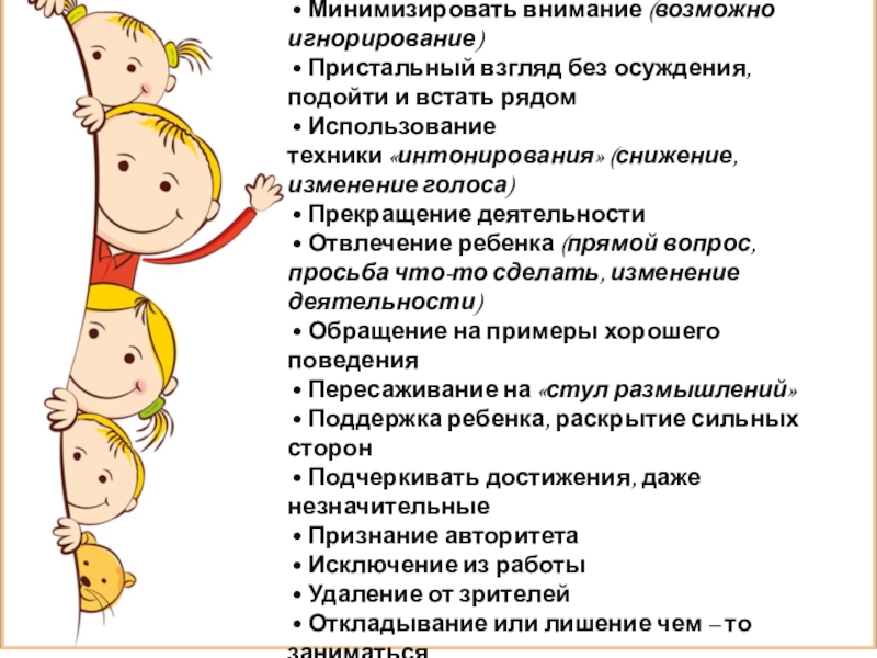 • Отвлечение ребенка (прямой вопрос, просьба что-то сделать, изменение деятельности)