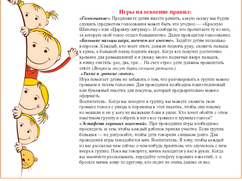 «Голосование». Предложите детям вместе решить, какую сказку мы будем слушать (предметом