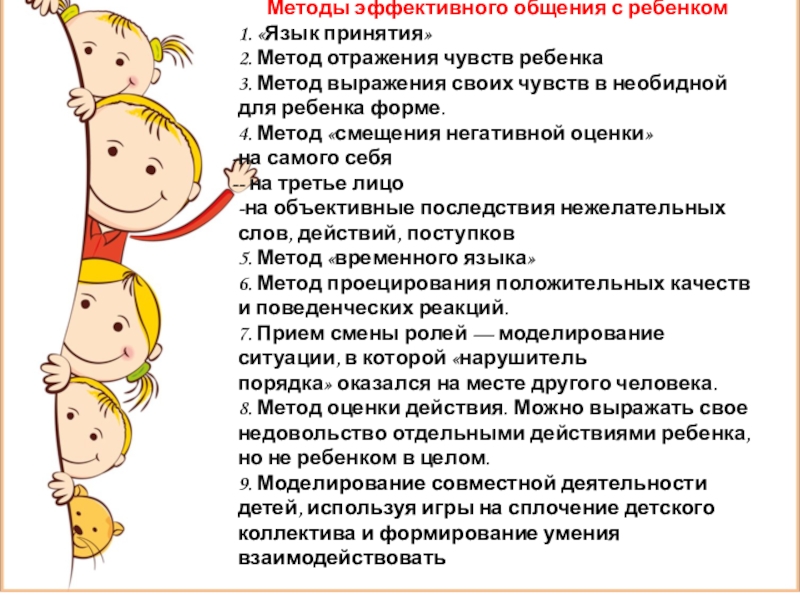 8. Метод оценки действия. Можно выражать свое недовольство отдельными действиями ребенка, но не ребенком в целом.