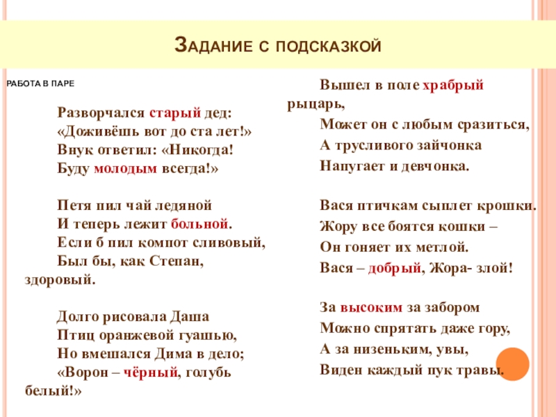 РАБОТА В ПАРЕ