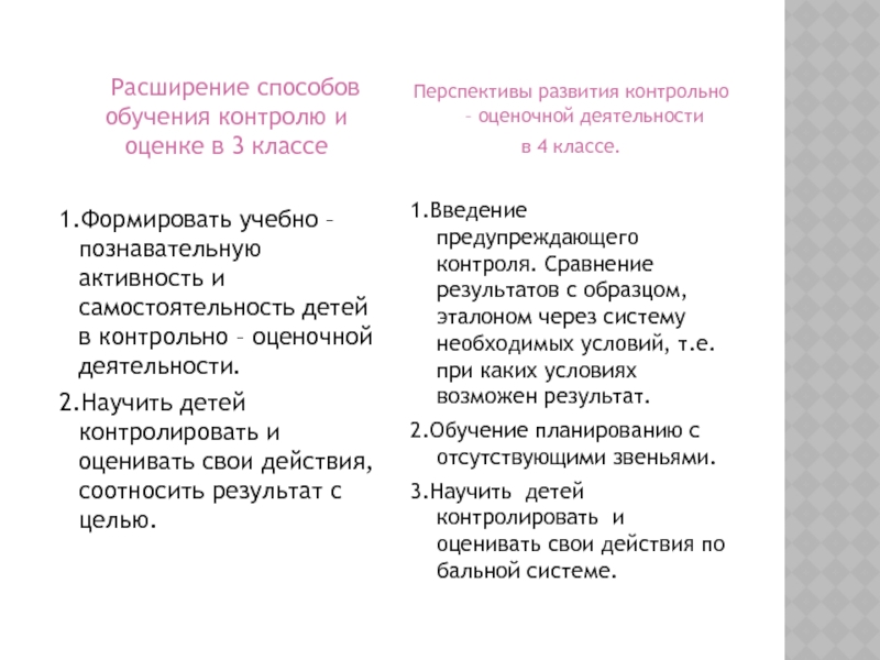 3.Разнообразить виды и соответственно приёмы формирования контрольно – оценочных действий.
