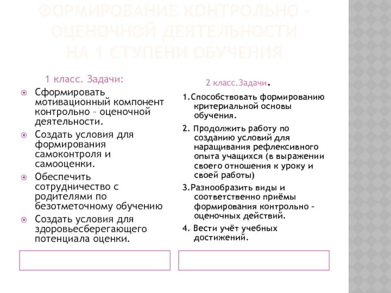 1.Способствовать формированию критериальной основы обучения.