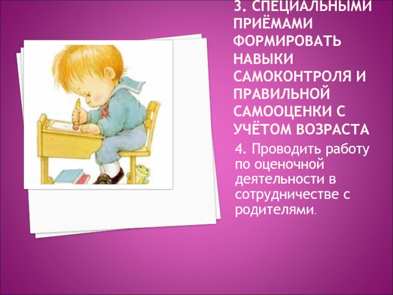 4. Проводить работу по оценочной деятельности в сотрудничестве с родителями.
