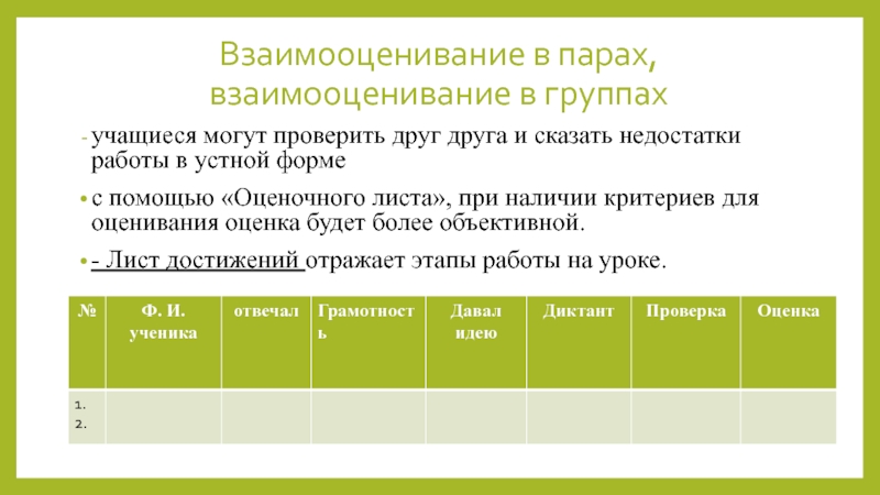 Слайд 18Взаимооценивание в парах,