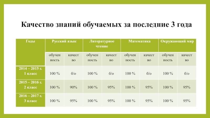 Слайд 20Качество знаний обучаемых за последние 3 года