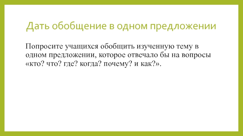 Слайд 15Дать обобщение в одном предложении