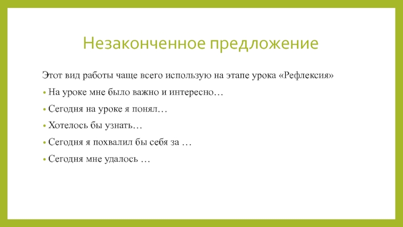 Слайд 19Незаконченное предложение