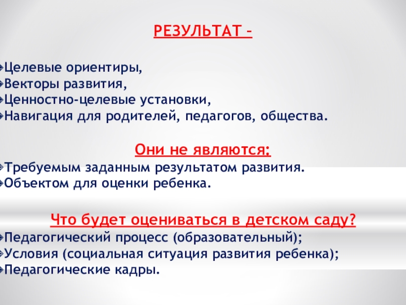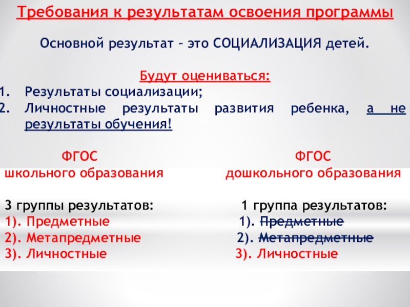 целевые ориентиры; - ОС – это правила развития