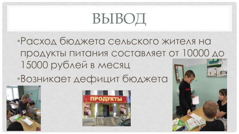 Расход на продукты питания в месяц 20000 рублей