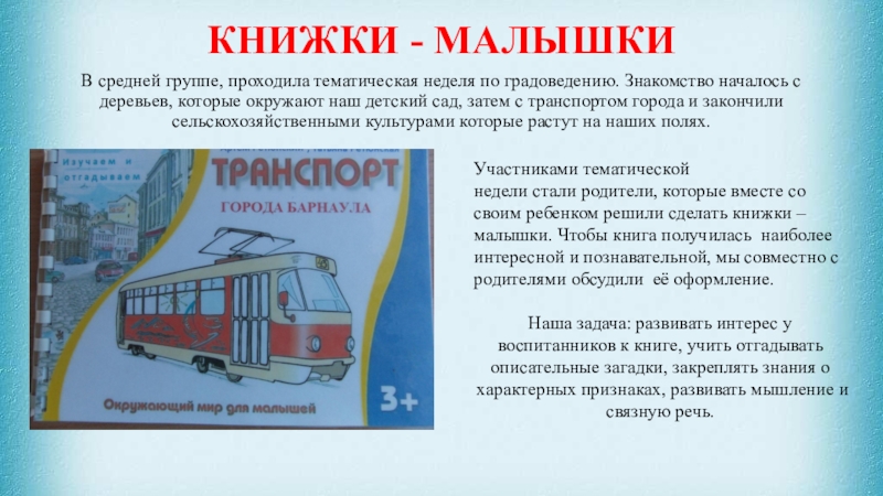 Участниками тематической недели стали родители, которые вместе со своим ребенком решили сделать книжки – малышки. Чтобы книга получилась наиболее интересной и познавательной, мы совместно с родителями обсудили её оформление.