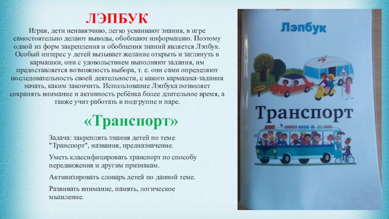 Задача: закреплять знания детей по теме "Транспорт", названия, предназначение.