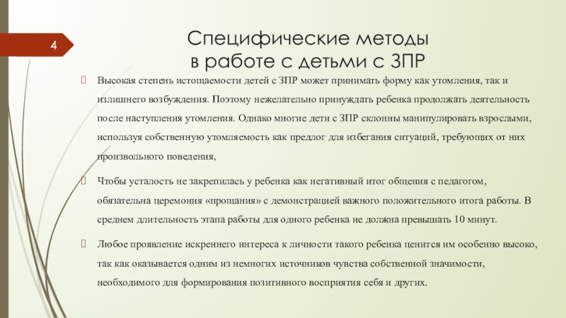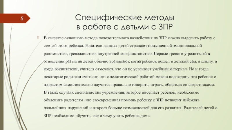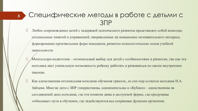 Слайд 6Специфические методы в работе с детьми с ЗПР