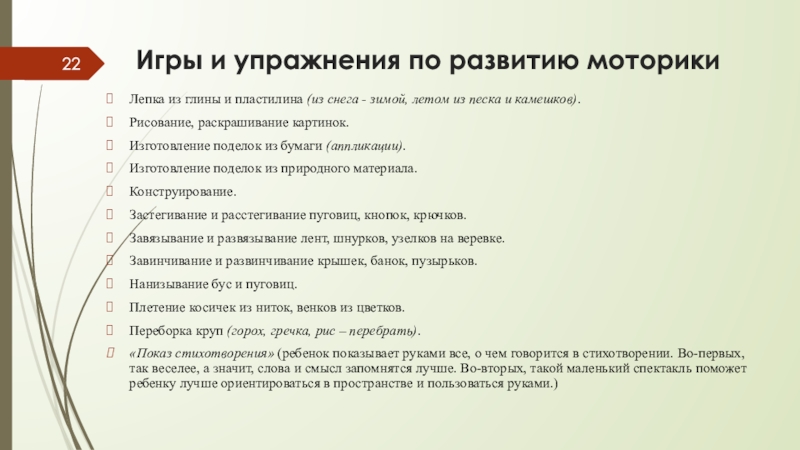 «Показ стихотворения» (ребенок показывает руками все, о чем говорится в стихотворении. Во-первых, так веселее, а значит, слова и смысл запомнятся лучше. Во-вторых, такой маленький спектакль поможет ребенку лучше ориентироваться в пространстве и пользоваться руками.)