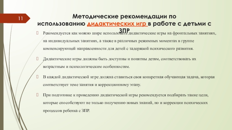 Слайд 11Методические рекомендации по использованию дидактических игр в работе с детьми с ЗПР