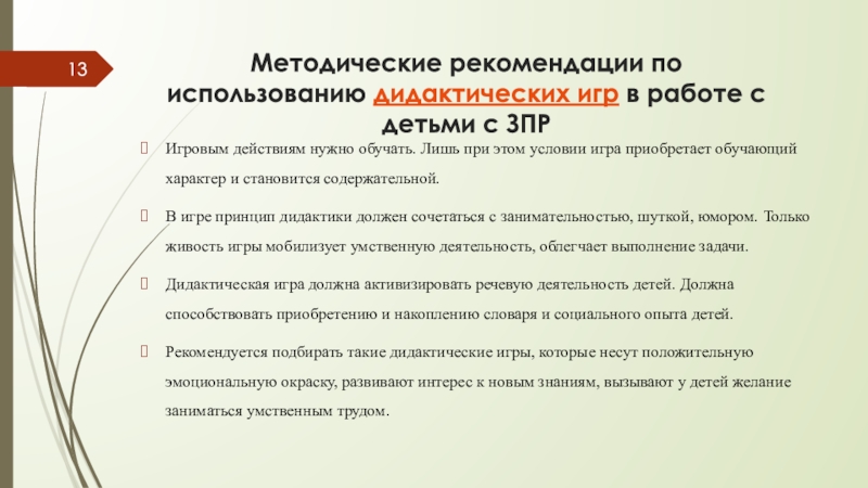 Слайд 13Методические рекомендации по использованию дидактических игр в работе с детьми с ЗПР