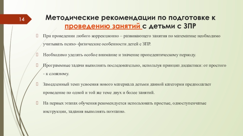 Слайд 14Методические рекомендации по подготовке к проведению занятий с детьми с ЗПР