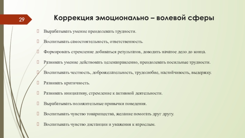 с ЗПР может принимать форму как утомления, так и излишнего возбуждения. Поэтому нежелательно принуждать ребенка продолжать деятельность после наступления утомления. Однако многие дети с ЗПР склонны манипулировать взрослыми, используя собственную утомляемость как предлог для избегания ситуаций, требующих от них произвольного поведения,