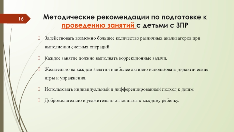 Слайд 16Методические рекомендации по подготовке к проведению занятий с детьми с ЗПР