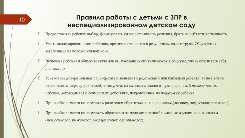 При необходимости посоветовать родителям обратиться к специалистам (логопед, дефектолог, психолог).