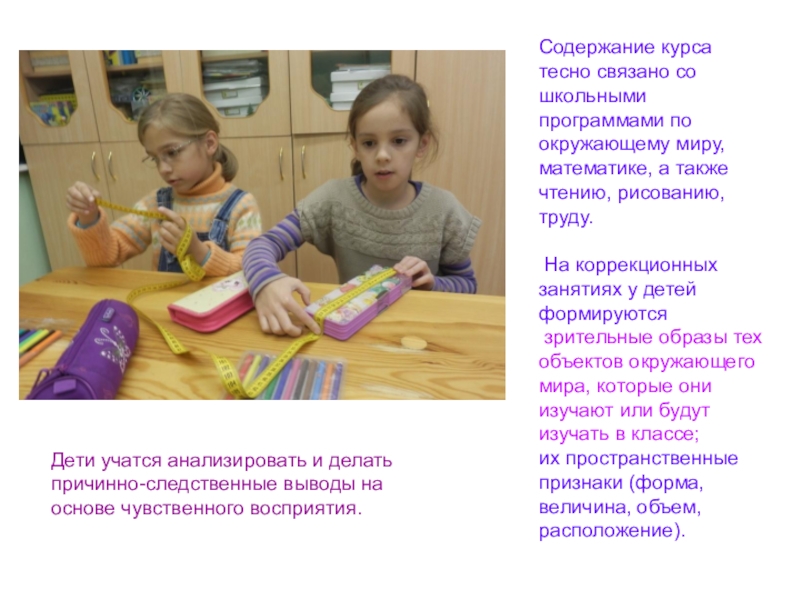 Дети учатся анализировать и делать причинно-следственные выводы на основе чувственного восприятия.