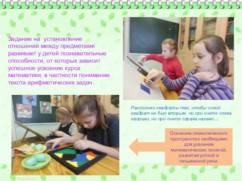 Освоение символического пространство необходимо для усвоения математических понятий, развития устной и письменной речи.