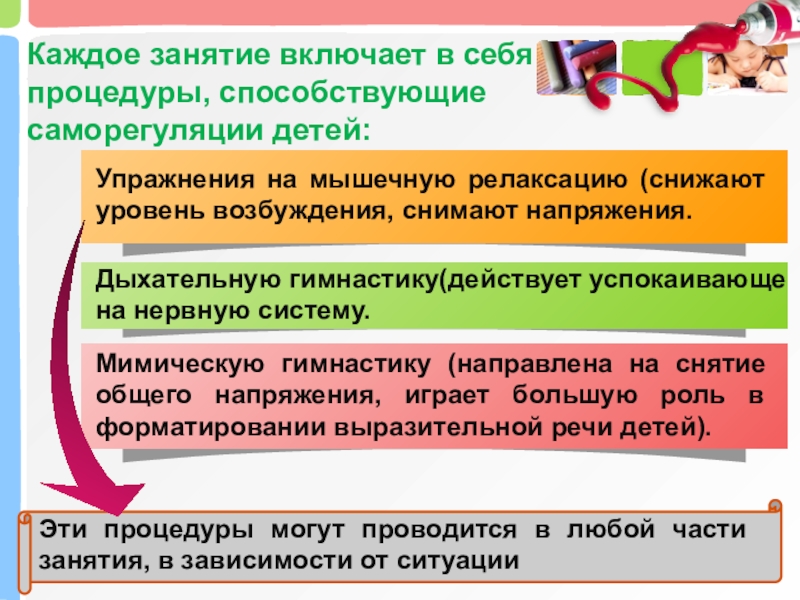 Эти процедуры могут проводится в любой части занятия, в зависимости от ситуации