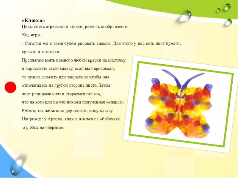 с вами будем рисовать кляксы. Для этого у нас есть лист бумаги, краски, и кисточки.