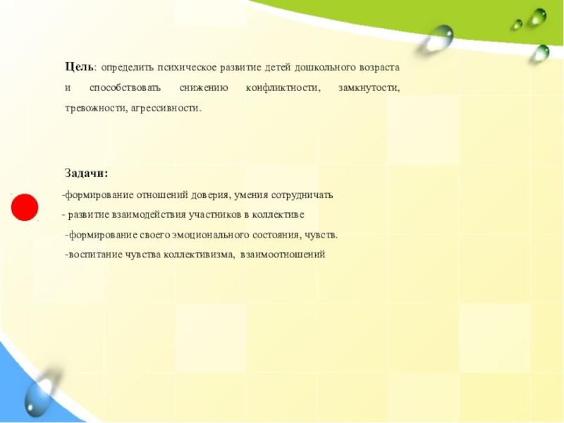 Слайд 4Цель: определить психическое развитие детей дошкольного возраста и способствовать снижению конфликтности,
