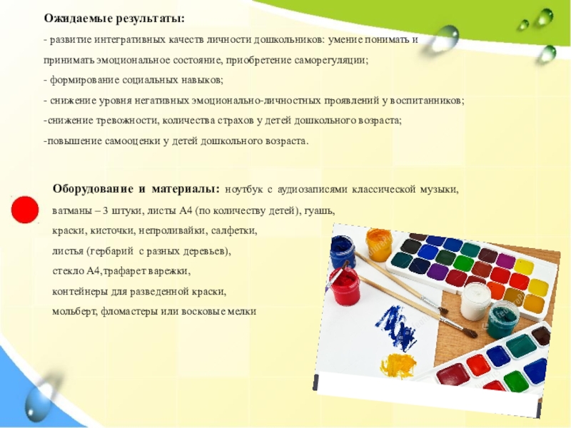 Оборудование и материалы: ноутбук с аудиозаписями классической музыки, ватманы – 3 штуки, листы А4 (по количеству детей), гуашь,