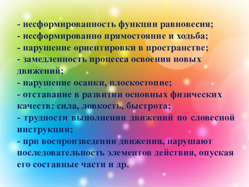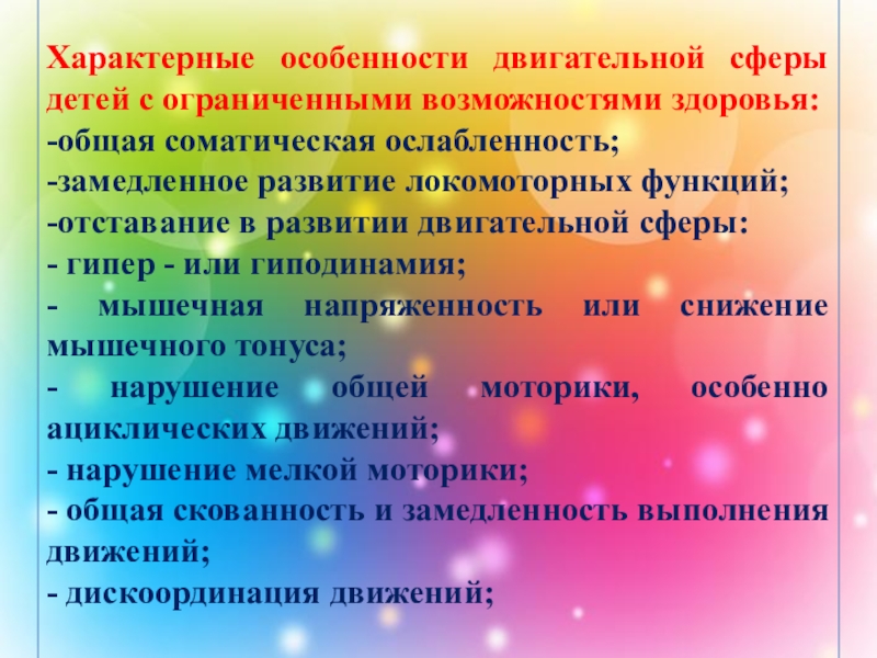 Характерные особенности двигательной сферы детей с ограниченными возможностями здоровья: