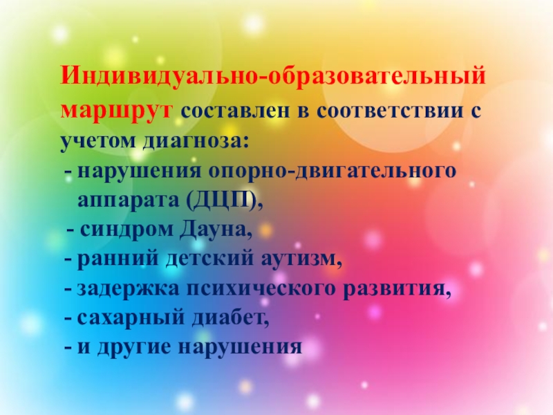 Индивидуально-образовательный маршрут составлен в соответствии с учетом диагноза: