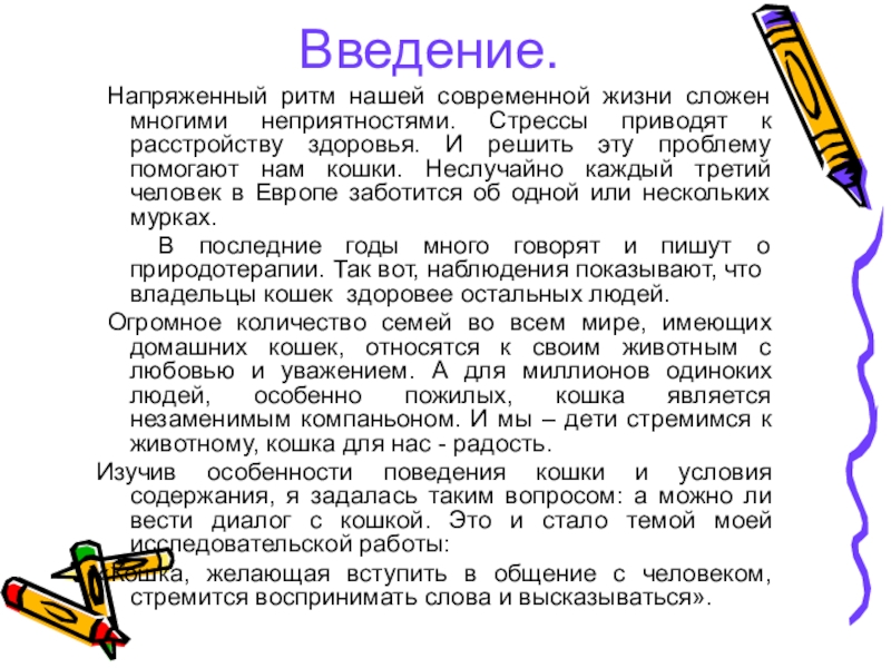 Изучив особенности поведения кошки и условия содержания, я задалась таким вопросом: а можно ли вести диалог с кошкой. Это и стало темой моей исследовательской работы:
