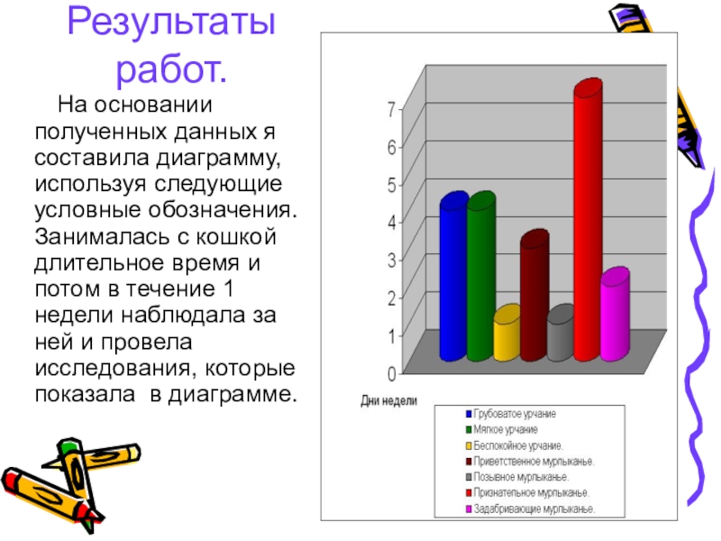 диаграмму, используя следующие условные обозначения. Занималась с кошкой длительное время и потом в течение 1 недели наблюдала за ней и провела исследования, которые показала в диаграмме.
