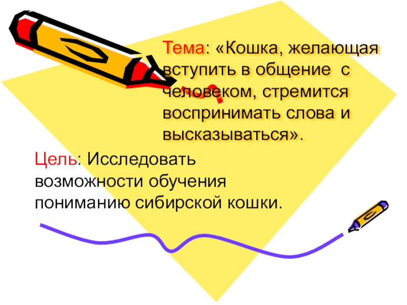 Слайд 2Тема: «Кошка, желающая вступить в общение с человеком, стремится воспринимать слова