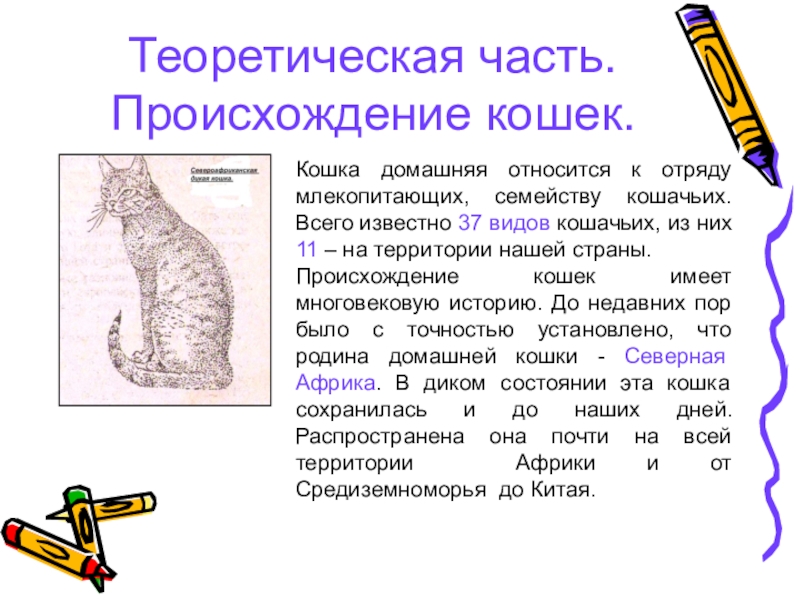 Слайд 7Теоретическая часть. Происхождение кошек.