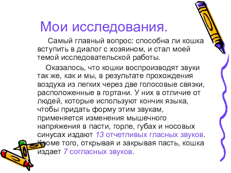 кошка вступить в диалог с хозяином, и стал моей темой исследовательской работы.