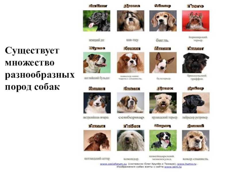 Слайд 8Существует множество разнообразных пород собак