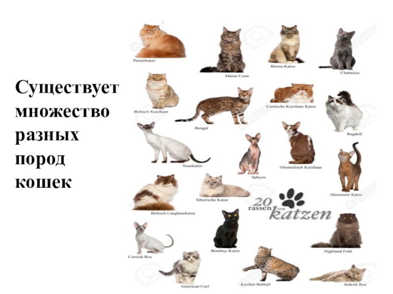 Слайд 17Существует множество разных пород кошек