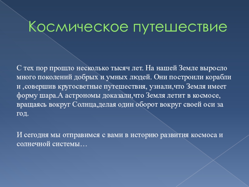 И сегодня мы отправимся с вами в историю развития космоса и солнечной системы…