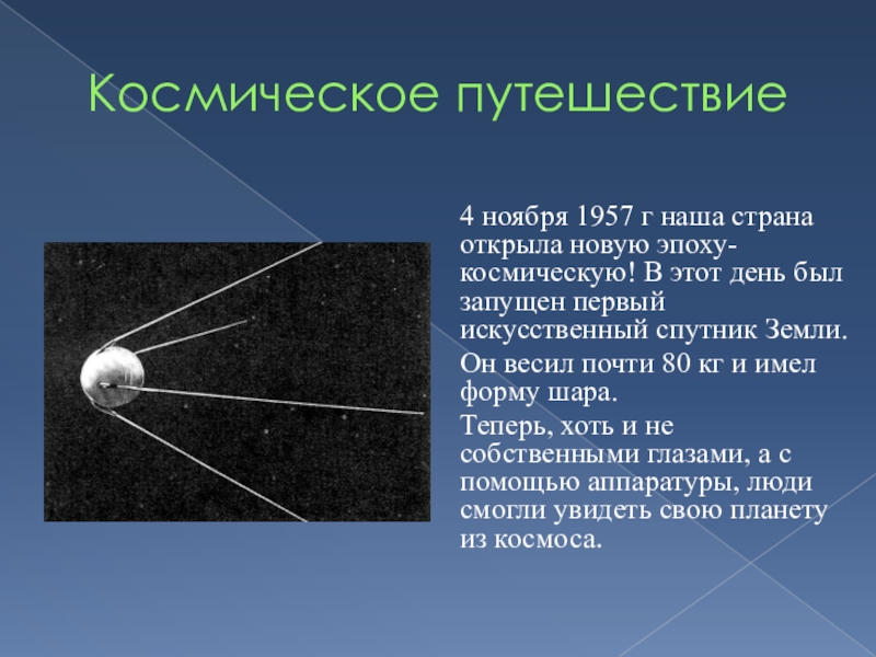 4 ноября 1957 г наша страна открыла новую эпоху-космическую! В