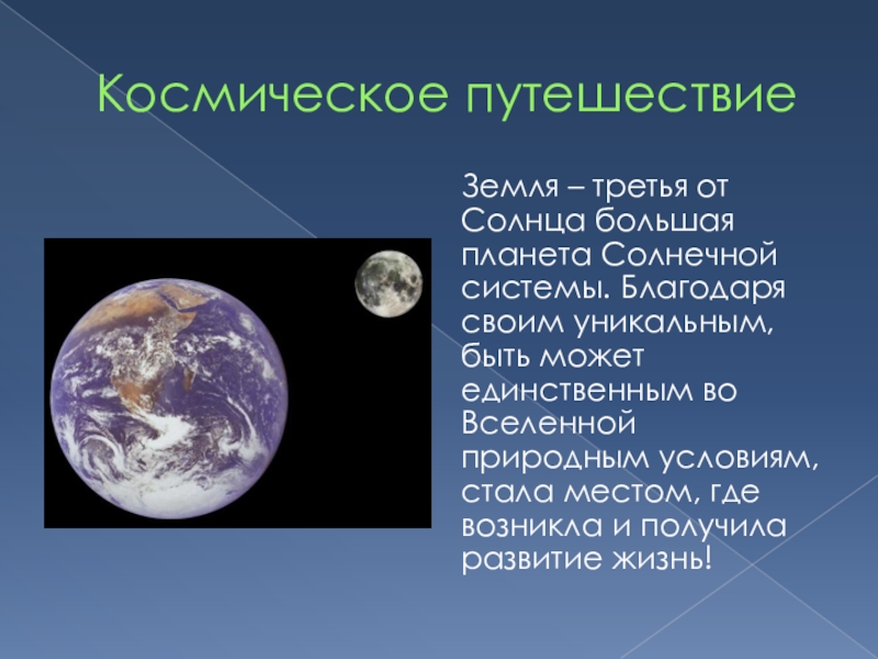 системы. Благодаря своим уникальным, быть может единственным во Вселенной природным условиям, стала местом, где возникла и получила развитие жизнь!