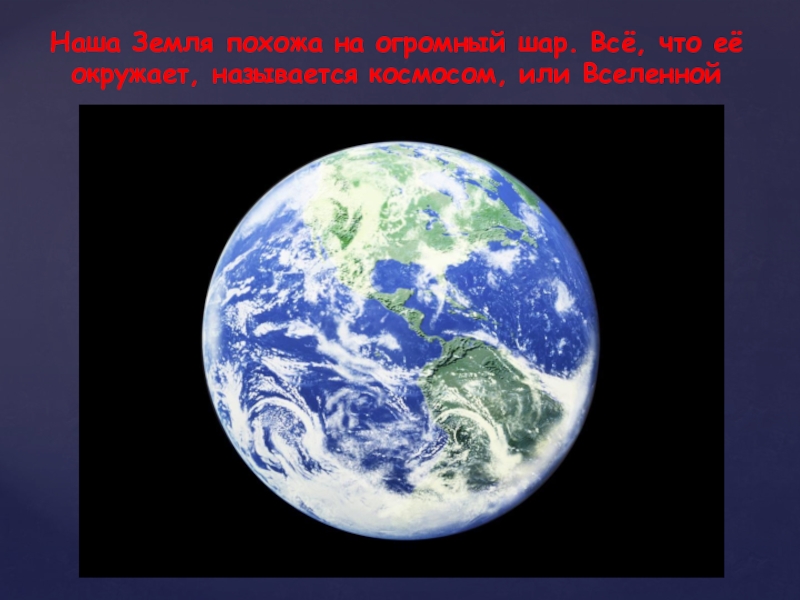 Слайд 2Наша Земля похожа на огромный шар. Всё, что её окружает, называется