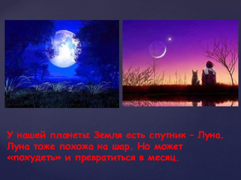 У нашей планеты Земля есть спутник – Луна.  Луна тоже похожа на шар. Но может «похудеть»