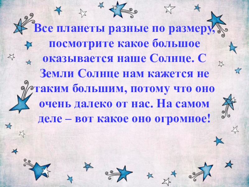 Слайд 14Все планеты разные по размеру, посмотрите какое большое оказывается наше Солнце.