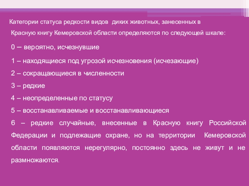 Красную книгу Кемеровской области определяются по следующей шкале: