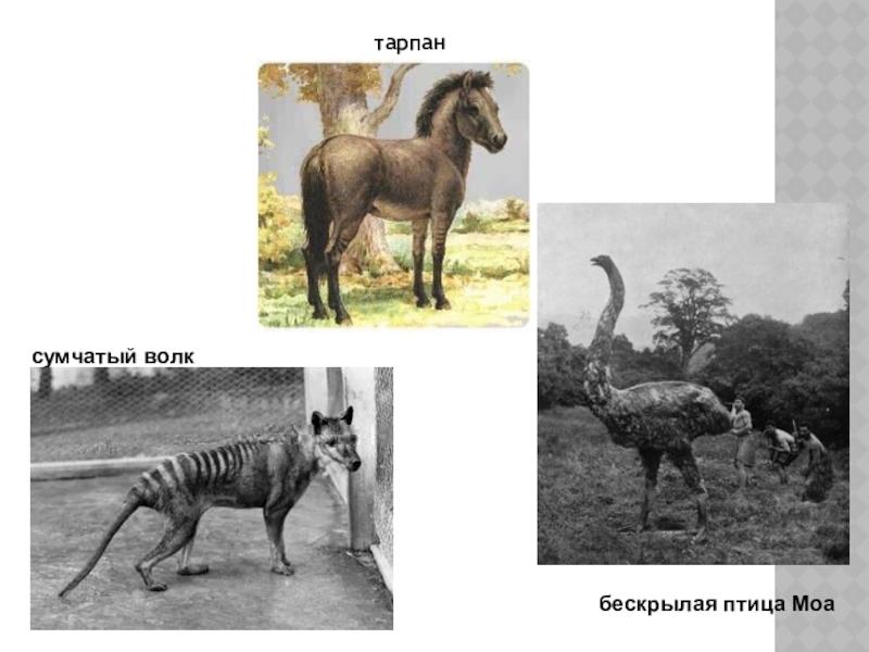 тарпан бескрылая птица Моа  сумчатый волк