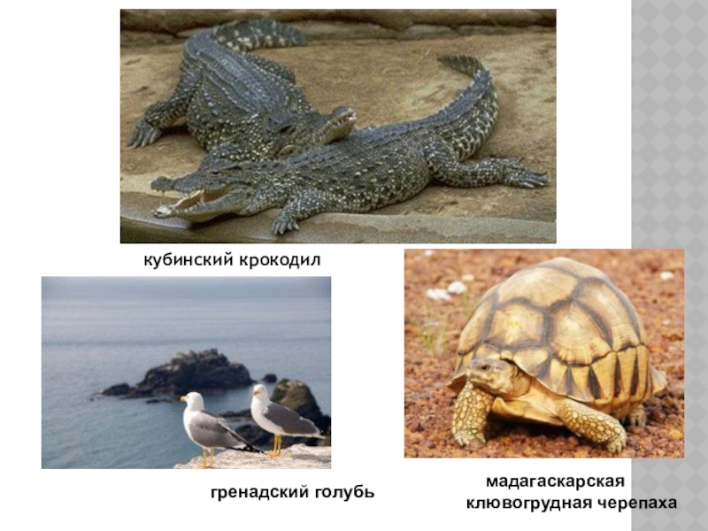 кубинский крокодил   мадагаскарская клювогрудная черепаха гренадский голубь