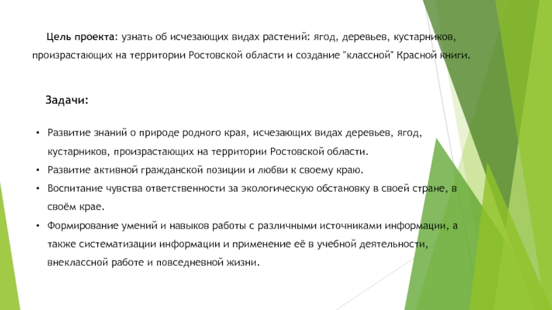 Развитие знаний о природе родного края, исчезающих видах деревьев, ягод, кустарников, произрастающих на территории Ростовской области.