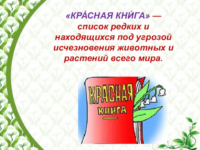 Слайд 2«КРА́СНАЯ КНИ́ГА» — список редких и находящихся под угрозой исчезновения животных