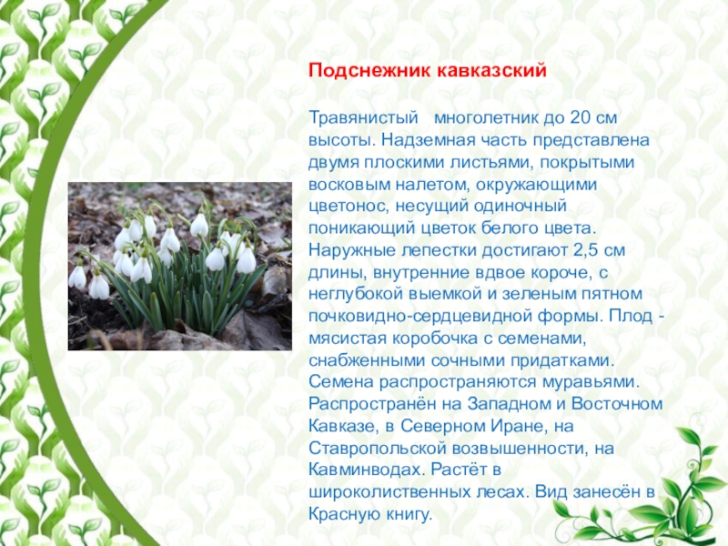 Слайд 10Подснежник кавказский